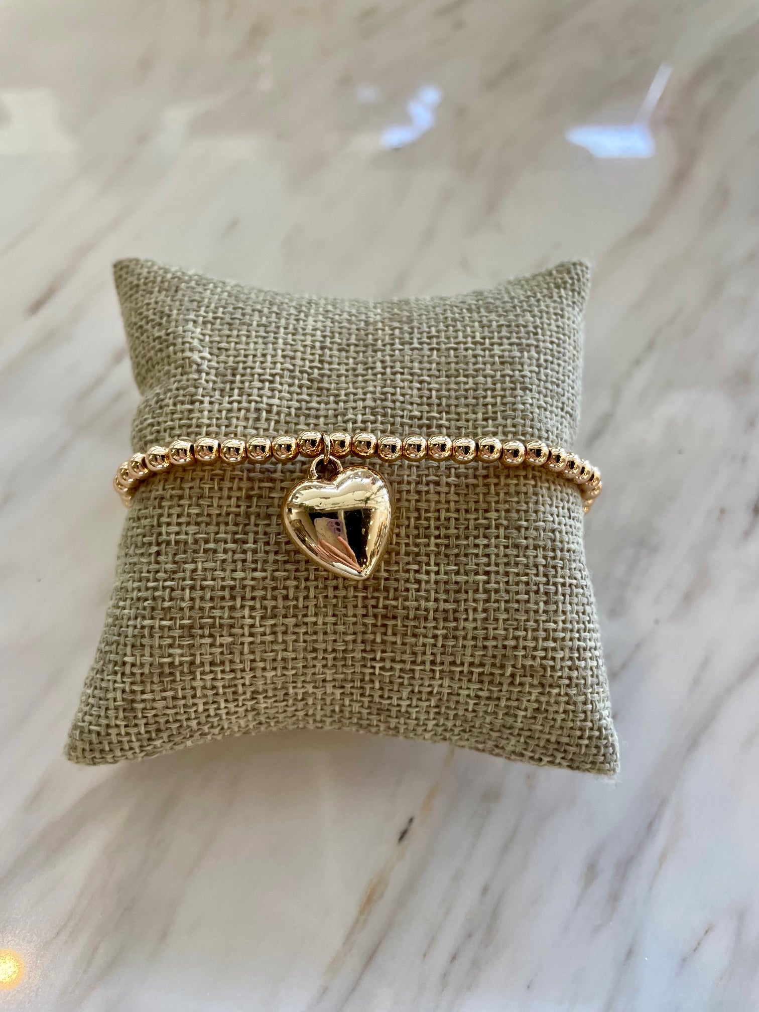 Gold beaded bracelet with heart charm