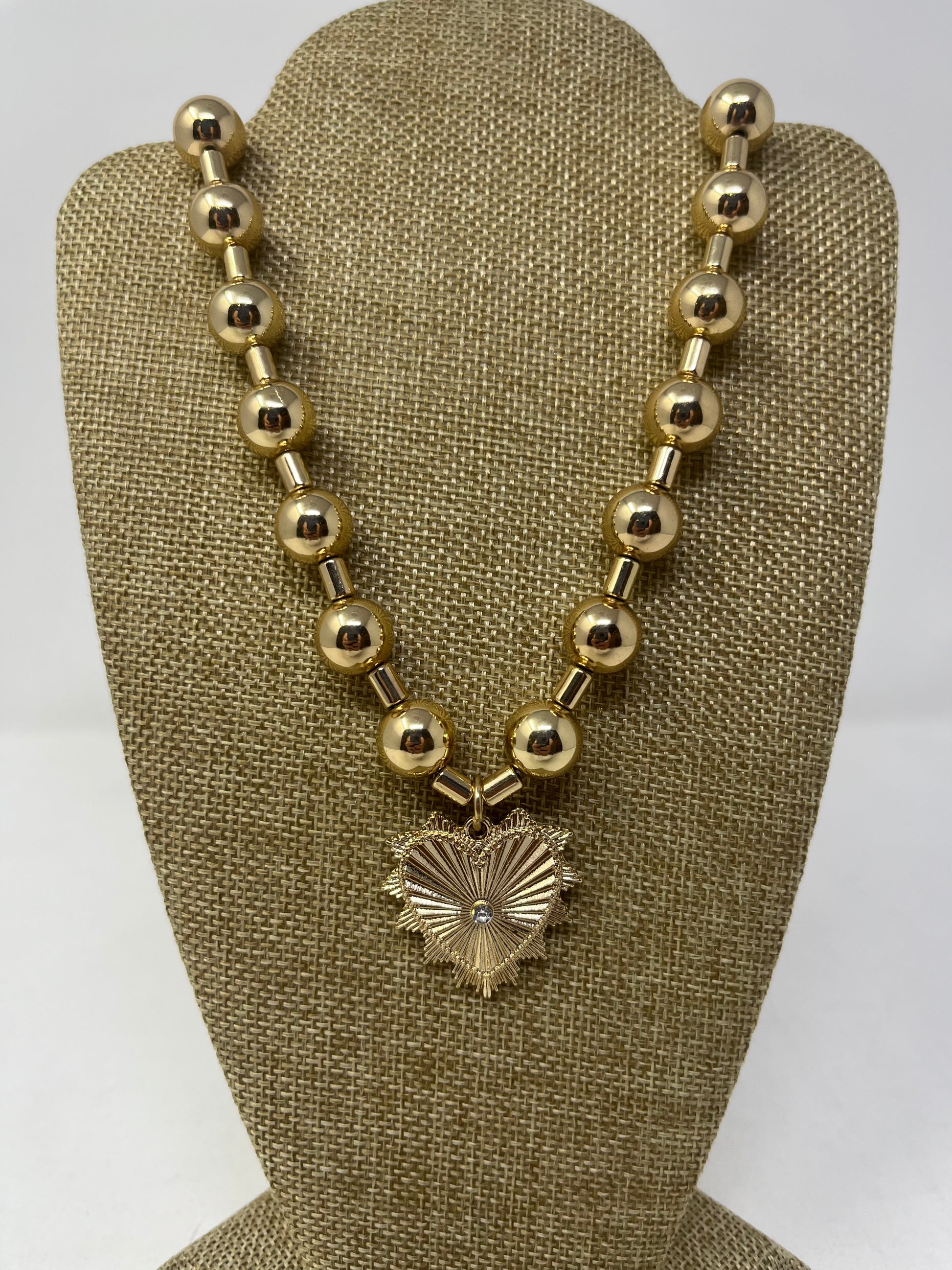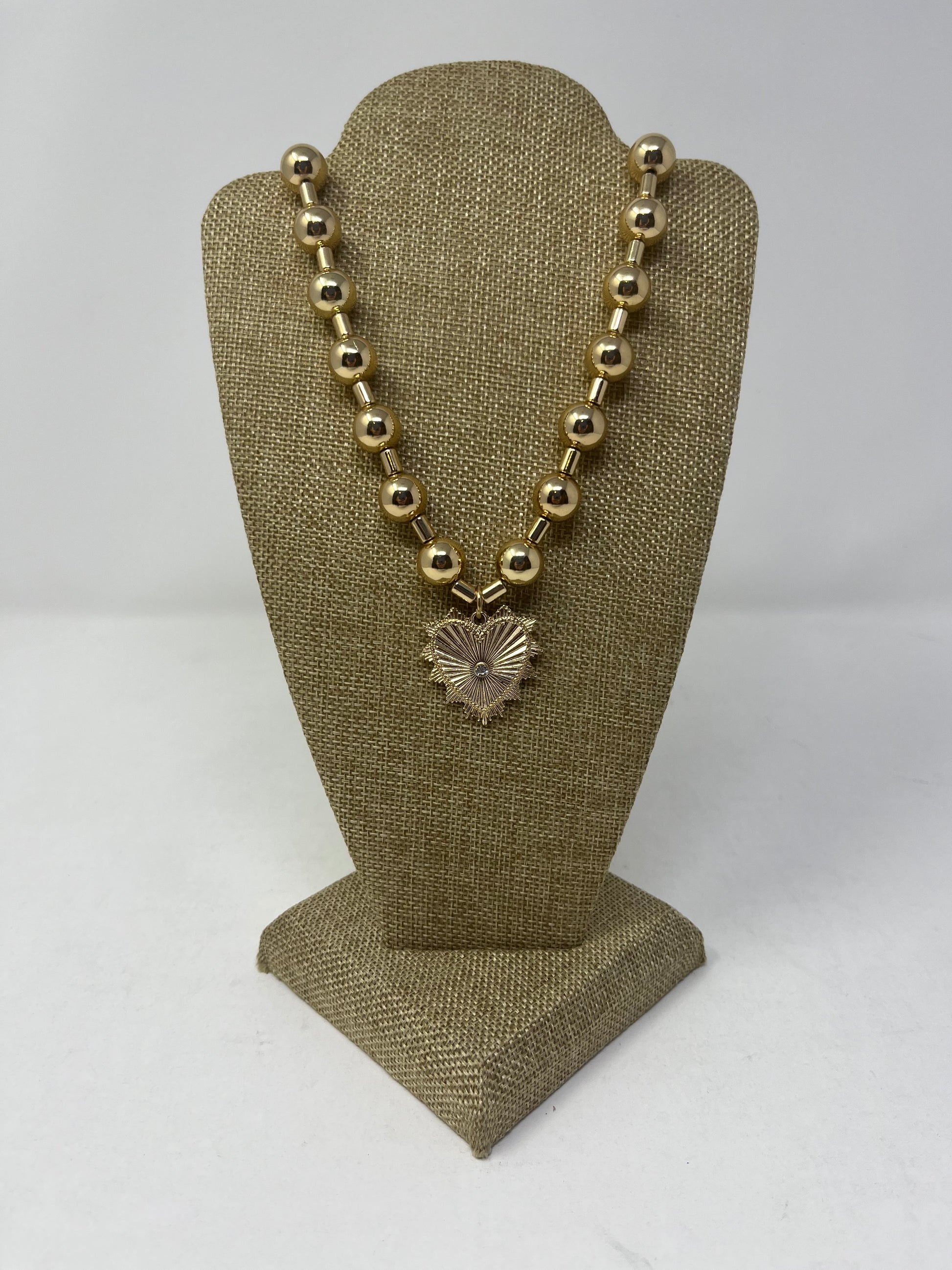 Thick Beaded Gold Heart Necklace